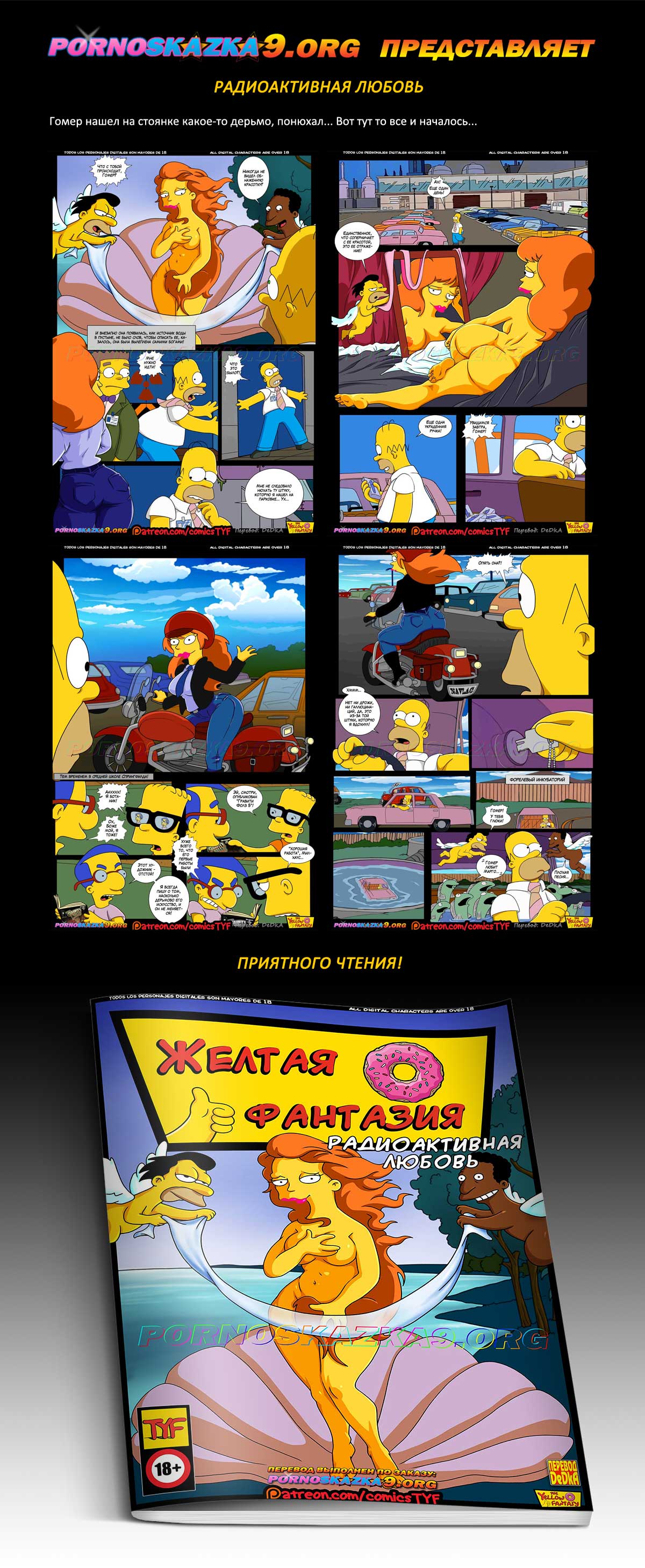 Порно комикс Симпсоны. Желтая фантазия. «Радиоактивная любовь.» Гомер нашел на стоянке какое-то дерьмо, понюхал… Вот тут то все и началось…